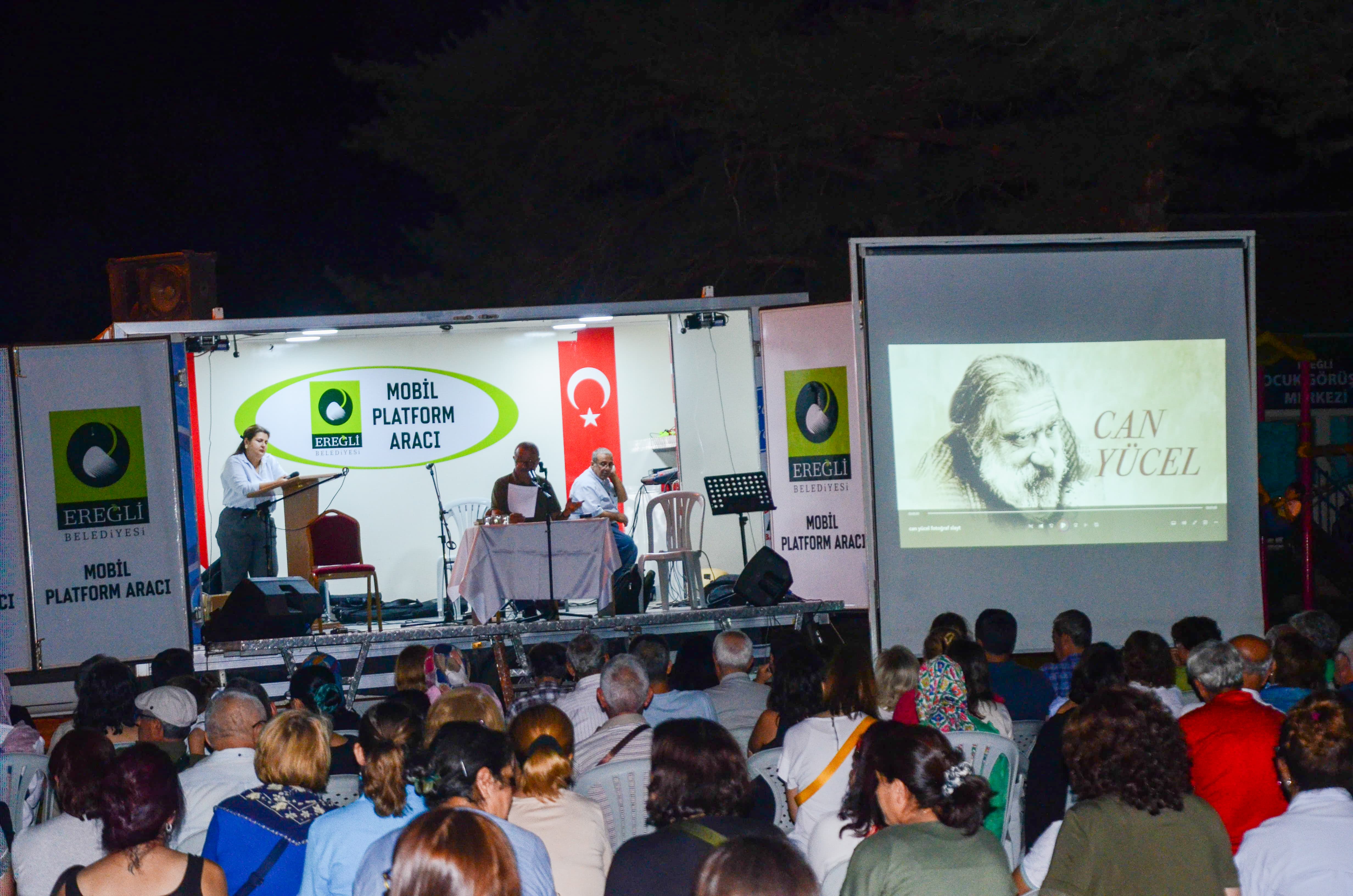 Daha sonra sahneye gelen şair ve yazar Şükrü Erbaş, Can Yücel’in muhteşem şiirlerini Ereğlililer için seslendirdi ardından da yerel sanatçıların mini konseri ile program sona erdi.