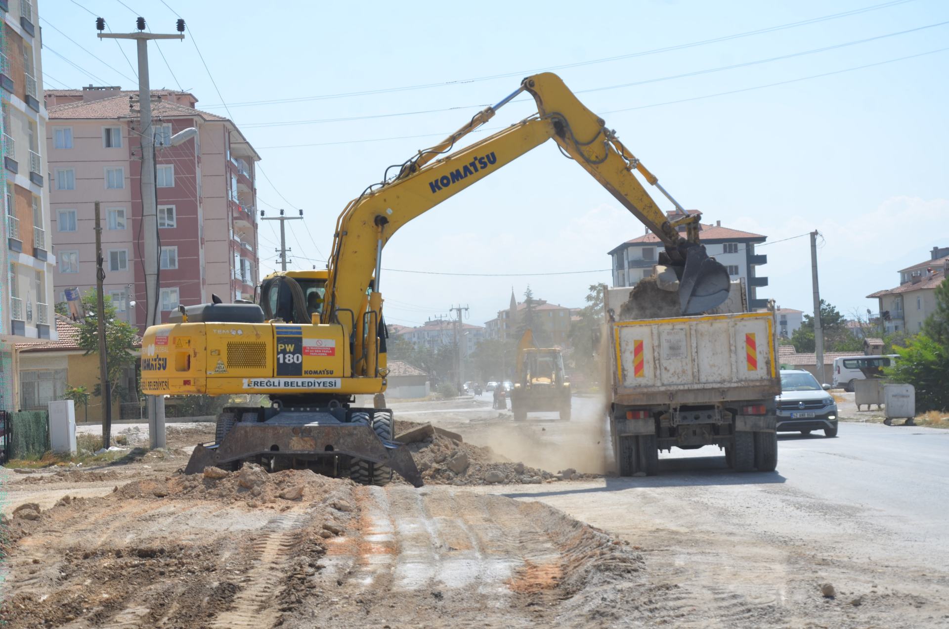 Ereğli Belediyesi, şehir genelindeki yol iyileştirme çalışmalarına devam ediyor. Çalışmalar kapsamında Mimar Sinan Mahallesi’nin çeşitli cadde ve sokaklarında zemin düzenlemesi yapılarak sıcak asfalt kaplama işlemi gerçekleştirildi. Asfalt çalışmalarını yakından takip eden Belediye Başkanı Umut Akpınar çalışmaları yerinde inceledi.